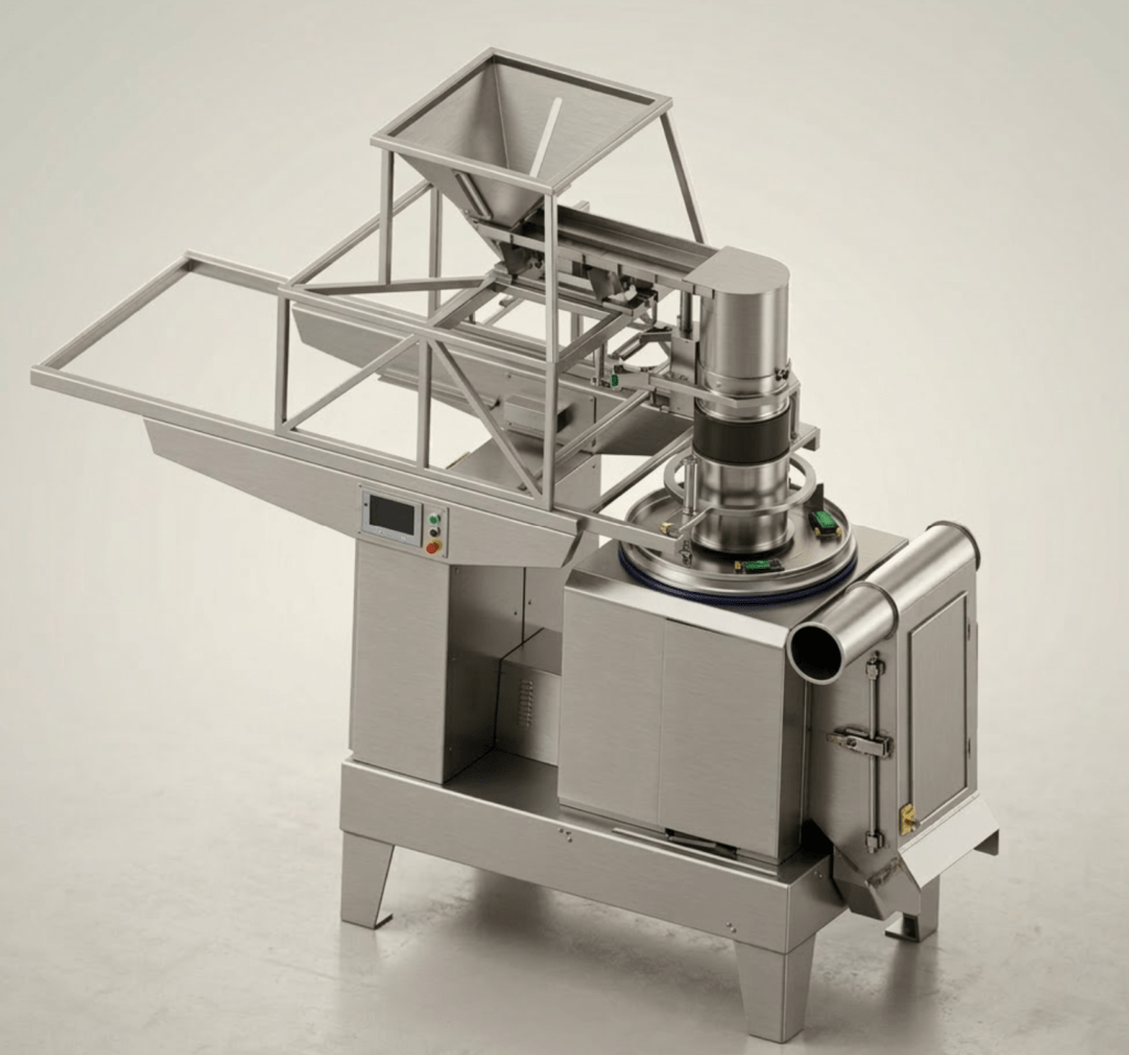 Pictured is a newly updated design of our electrically heated T1000 Torbed food processor. This machine has been a workhorse of our fleet for many years.